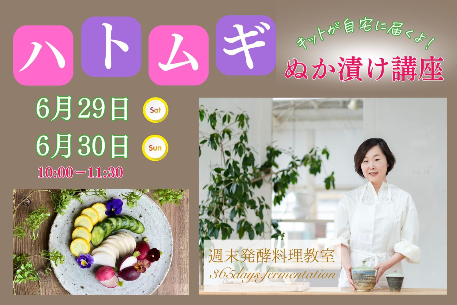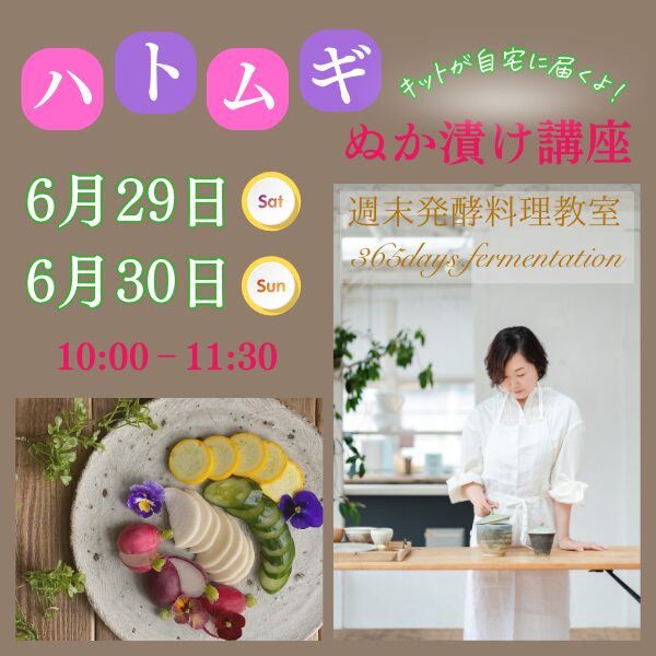 さまざまな効能の詰まった、とっても珍しい「ハトムギぬか漬け」の講座を、忙しいあなたの生活に合わせて、Zoomオンライン講座で開催します。